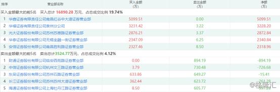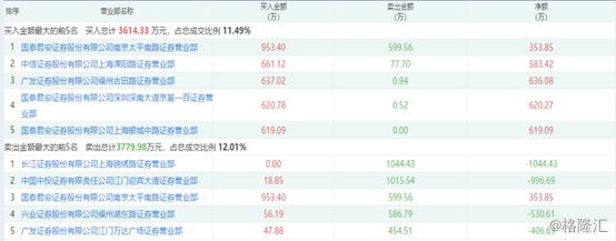 而当日的卖出榜上则有,长江证券股份有限公司上海锦绣路证券营业部、中国中投证券有限责任公司江门迎宾大道证券营业部、广发证券股份有限公司江门万达广场证券营业部等席位。