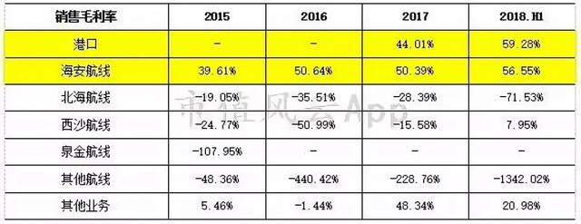 西沙航线:于2013年开通,在多年亏损后,2018年上半年销售毛利率第一次实现由负转正,销售毛利率明显提高,2018年上半年销售毛利率提高到7.95%。