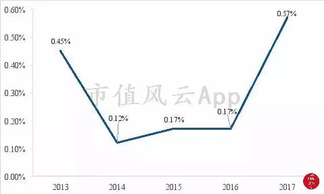 从公司历史分红情况看,公司2017年股息率从2016年的0.17%提高到0.57%,但最近几年分红情况并不稳定,公司历年分红并不高。