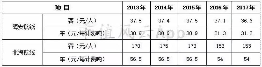 2000年至今海安航线没有新的船公司进入该航线,运力更新亦基本采取以新替旧的方式进行,海安航线具有较高的资质及政策门槛。