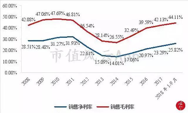 从综合销售毛利及销售净利率看,最近10年,公司的综合销售毛利率、销售净利率经历了从下降再提高的过程,2014年开始,公司销售毛利率、销售净利率逐年提升。