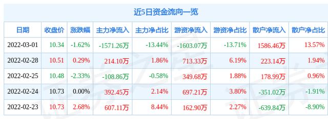资金流向数据方面,上个交易日主力资金净流出1571.26万元,游资资金净流出1603.07万元,散户资金净流入1586.46万元。近5日资金流向一览见下表: