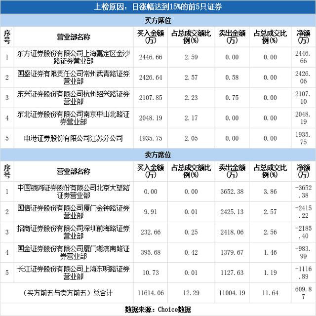 今日榜单上出现了一家实力营业部。卖四为国金证券厦门湖滨南路证券营业部,该席位买入395.68万元,卖出1379.67万元,净买额为-983.99万元。近三个月内该席位共上榜92次,实力排名第40。