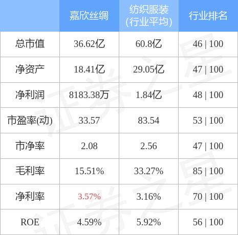 嘉欣丝绸主要指标及行业内排名如下: