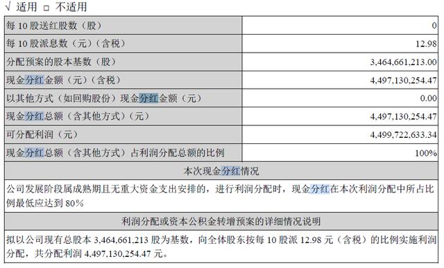 营业收入为666.82亿元,同比减少9.72%。归母净利润为48.66亿元,同比减少22.21%,扣非净利润为44.34亿元,同比减少23.22%。基本每股收益为1.4044元。每10股派发现金红利12.98元(含税)。