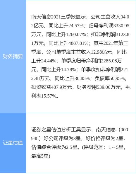 股票000948(股票000948股吧)1月27日盘中消息,9点40分南天信息(000948)封跌停板。目前价格15.86,下跌9.99%。其所属板块计算机应用目前下跌。领涨股为慧辰股份。资金流向数据方面,上个交易日主力资金净流入1366.19万元,游资资金净流入1268.95万元,散户资金净流出3413.47万元。近5日资金流向一览见下表:南天信息主要指标及行业内排名如下:南天信息(000948)个股概况:以上内容由证券之星根据公开信息整理,如有问题请联系我们。