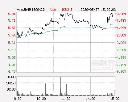 金融界网站5月27日讯 今日三元股份开盘报5.37元,截止11:30分,该股涨9.98%报5.84元,封上涨停板。